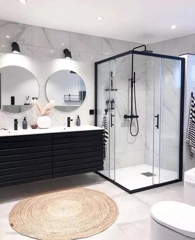 卫生间里面的五金件可以选择现在很流行的黑色或金色的,黑色或金色的五金件看起来很有质感,不妨可以尝试一下,记得选择免打孔的,这样比较方便安装。