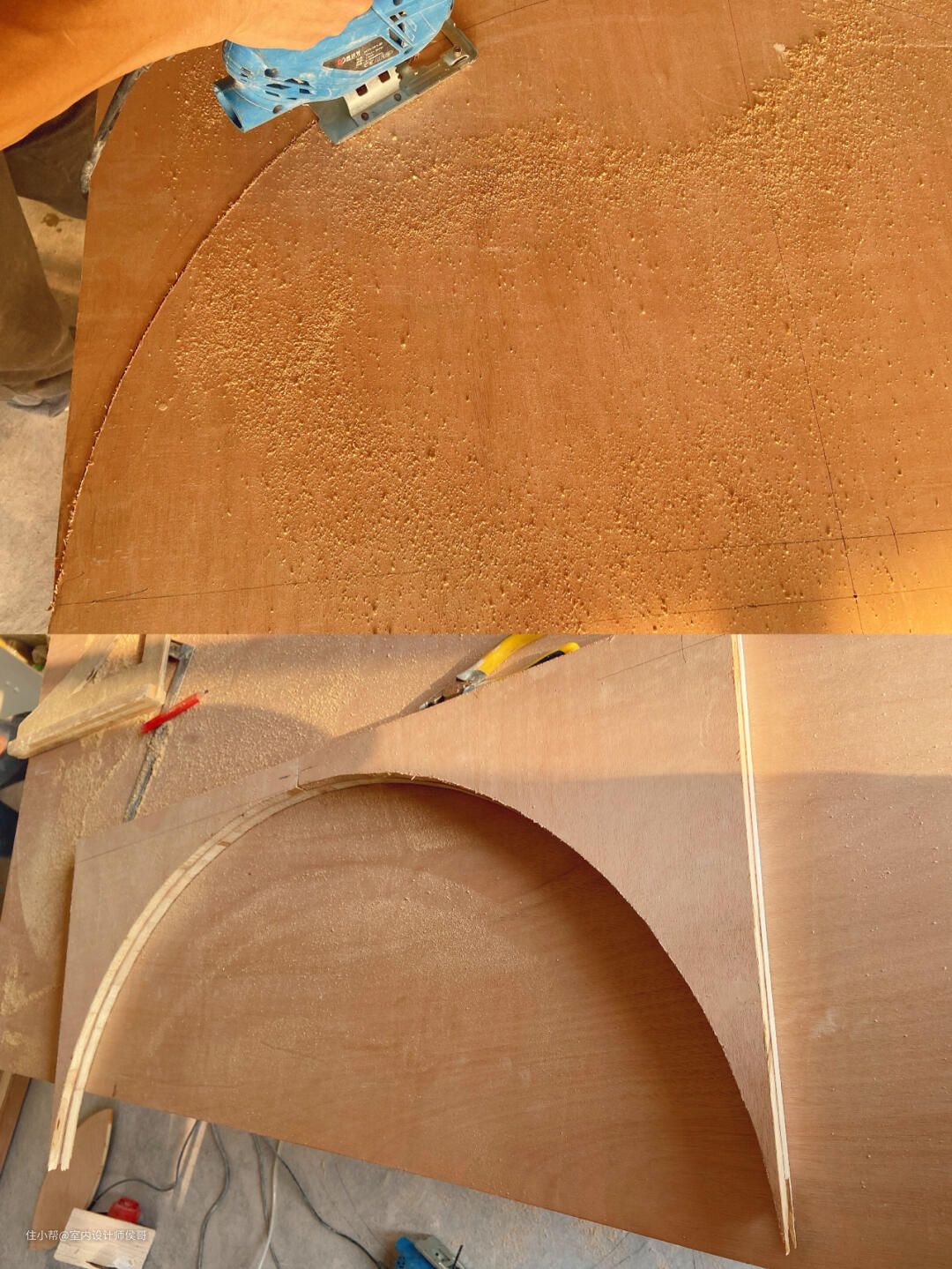 2确定拱的弧度与尺寸,在细木工板上描绘再切割出弧形,可以多试几次
