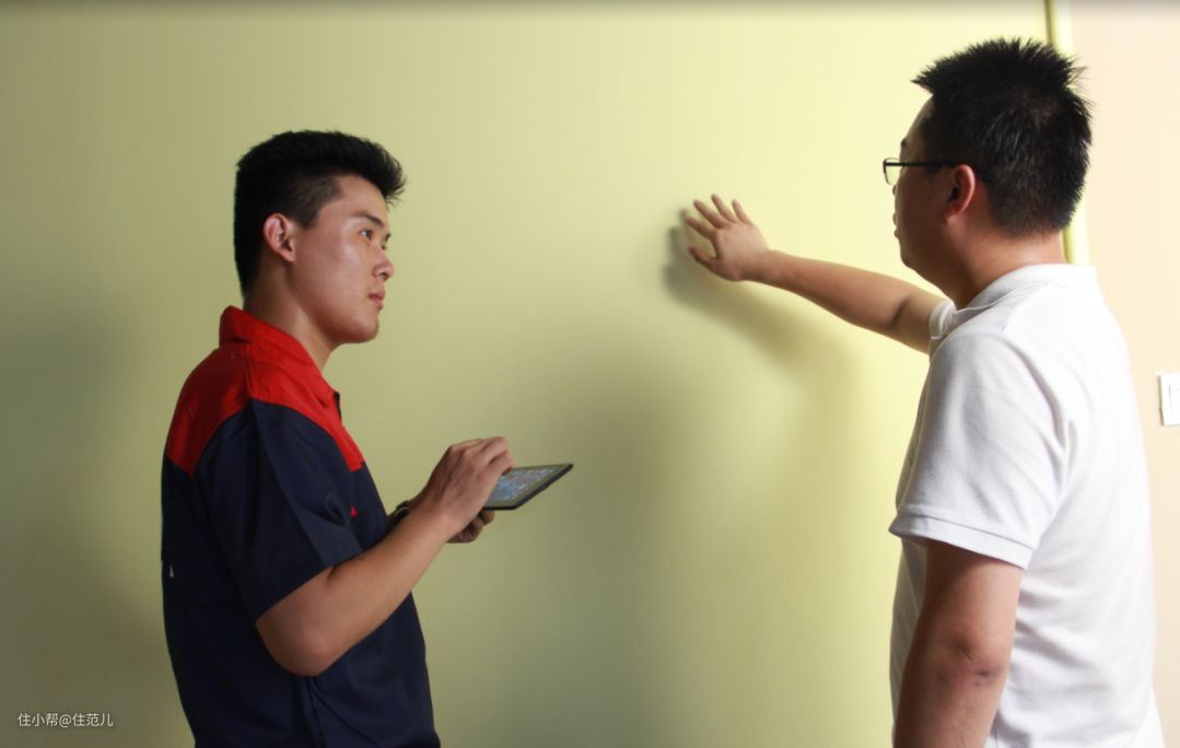 温馨提示:老房的预制板墙,洒水铲腻子时,注意水量不要过多,容易渗到楼下。