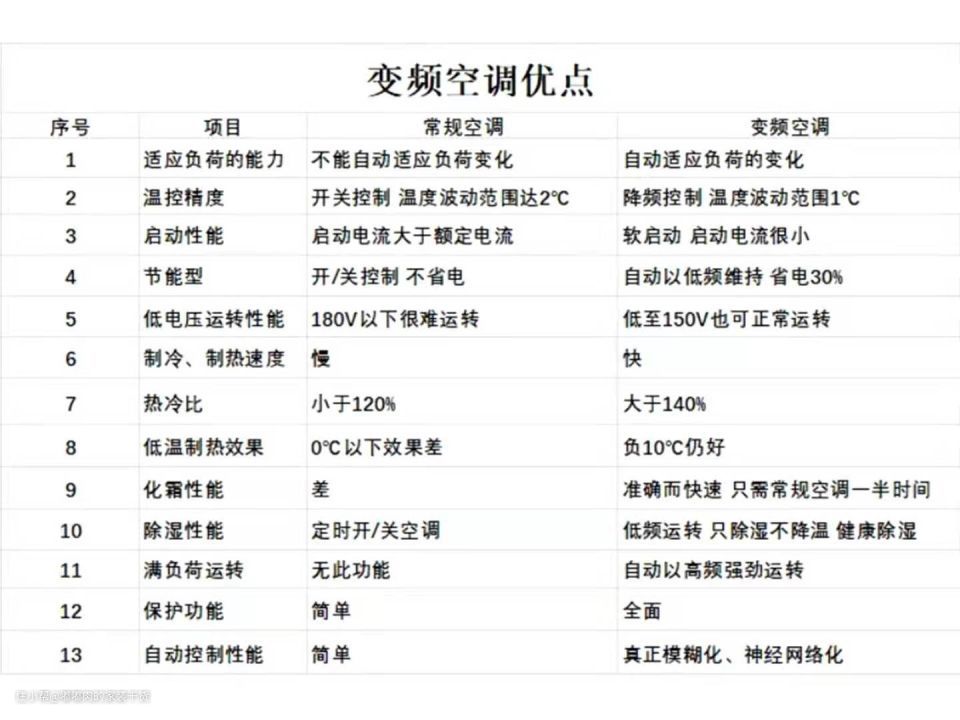 变频空调始终在低频运转,运行平稳,震动减小,噪音较低。