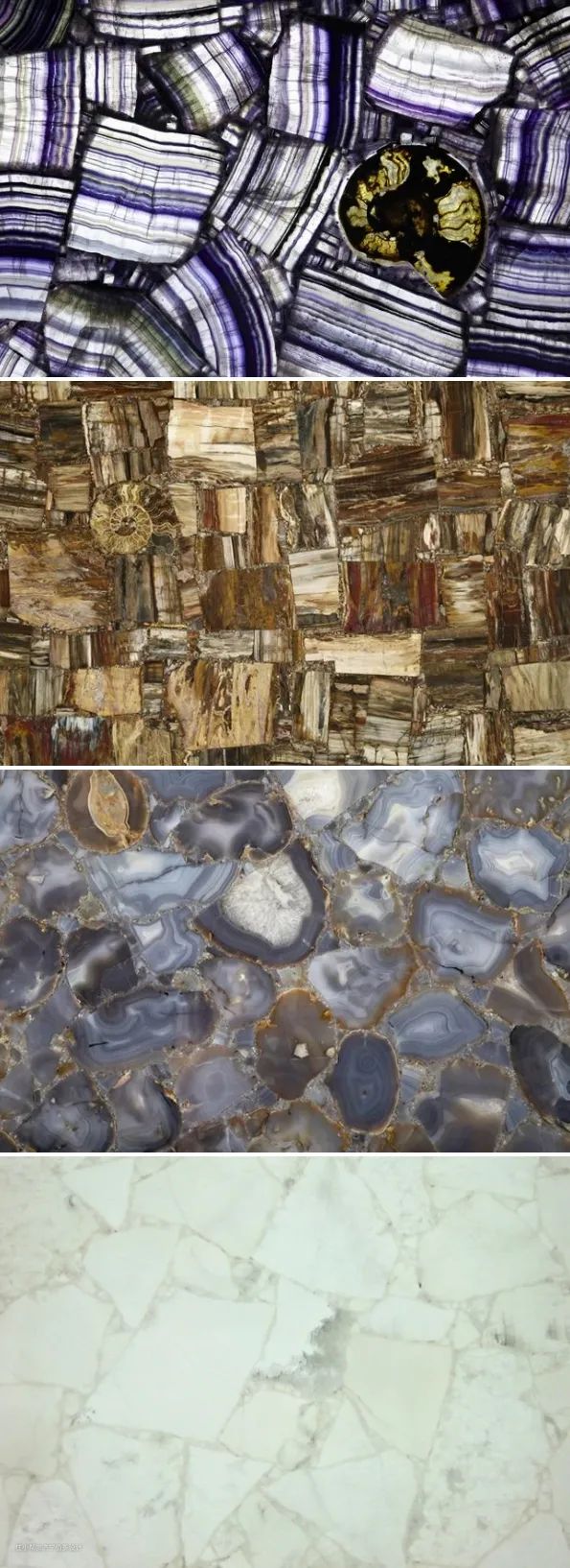 半宝石是将各种珍贵原石与玻璃打碎合成在一起的石材,品种多种多样,价格适中,可满足空间多样化的需求,一起来欣赏下吧。