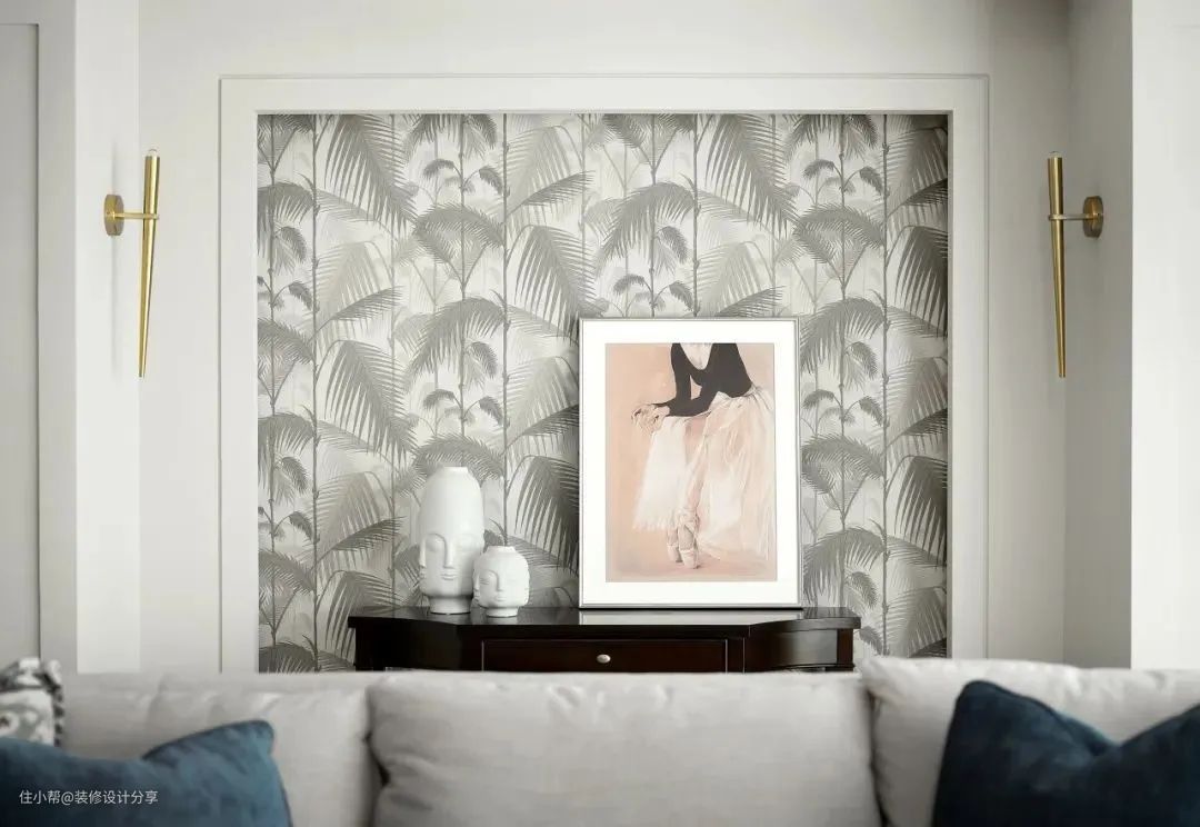 没有电视,可以将喜欢的挂画都挂在墙上,打造成一面展示墙。