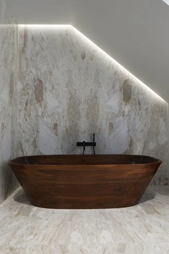 - 当然有些私宅用户,由于个人的偏好也会选用,毕竟木质浴缸看着就有那远山树林的调调了。
