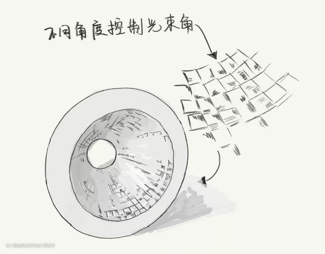 常规的筒灯和射灯的光束角度是通过反光杯或者透镜的折射来实现的: