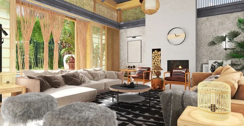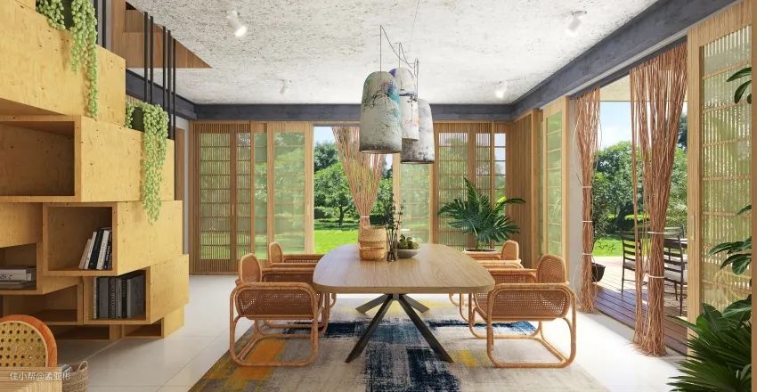 总的来说,营造室内雨林气息的设计元素一般是:大面积的绿植、藤制或木制家具、热烈的图案色彩。