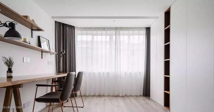 书房整体的配色以原木+白制材料为基调,只为打造安静清爽的办公、学习空间。而且这样的配色和材质的选择也非常适合书房该有的气质,相对通透的空间致使整体的采光变得非常好。