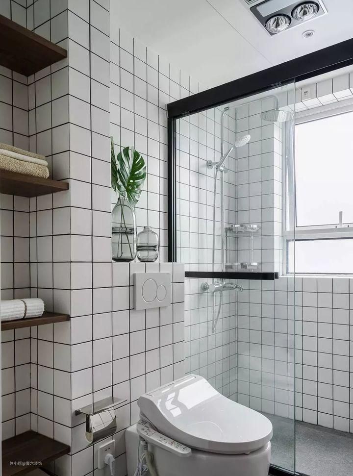 卫生间还是以简约的原木+白为基调,黑色点缀突出精致感,使得整体看起来简洁优雅而又充满了现代时尚的轻奢感。