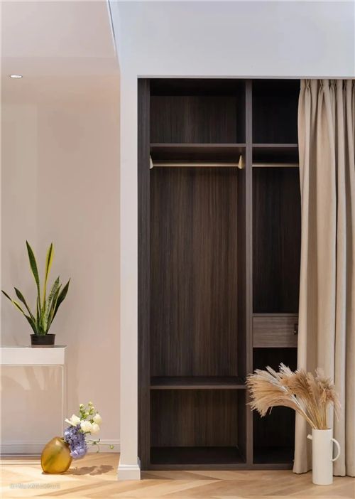 床头左侧设置为一组收纳衣柜