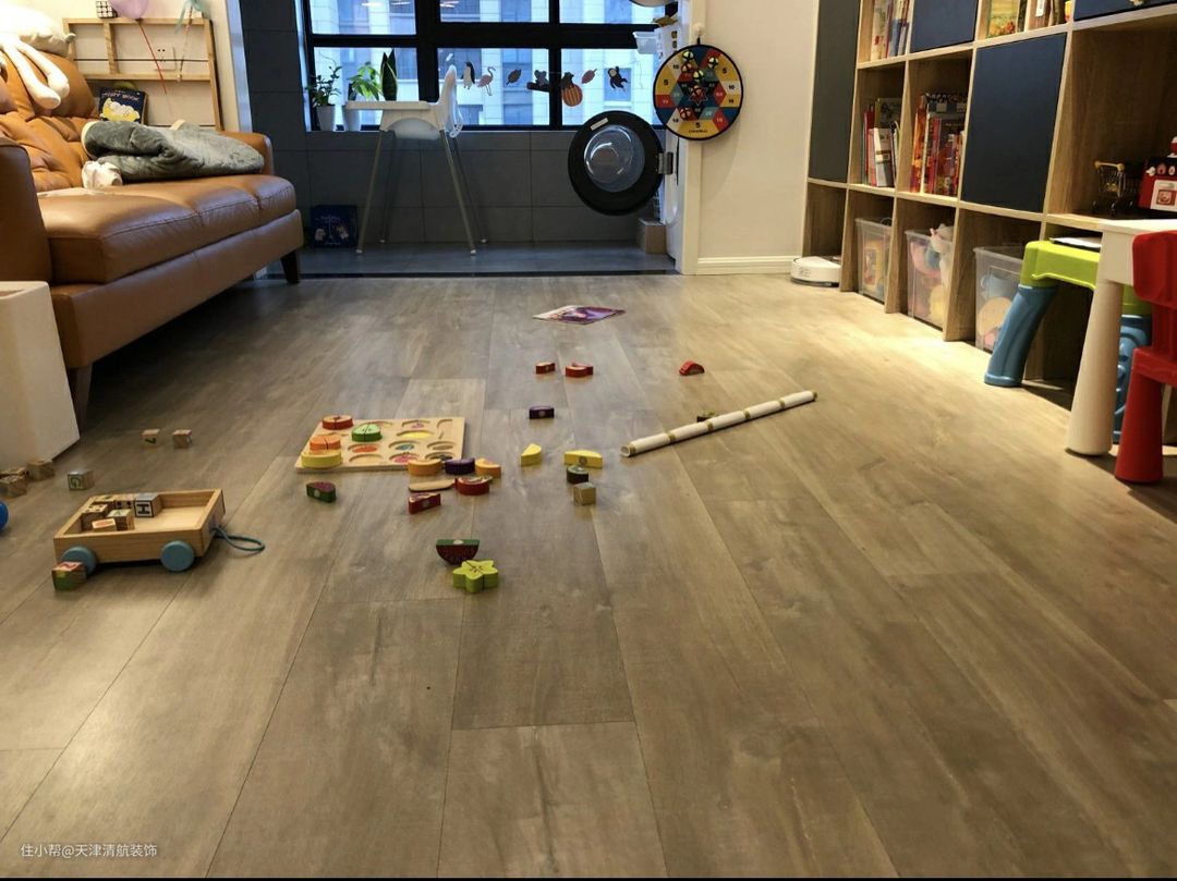 地面选择铺贴木地板也比较合适,没有瓷砖那种冷冰冰的感觉,给人的感觉更舒适,更显得有温馨感。做地暖,即使天气再冷,也能光着脚丫子或直接坐地板上,不会受到任何影响哈。
