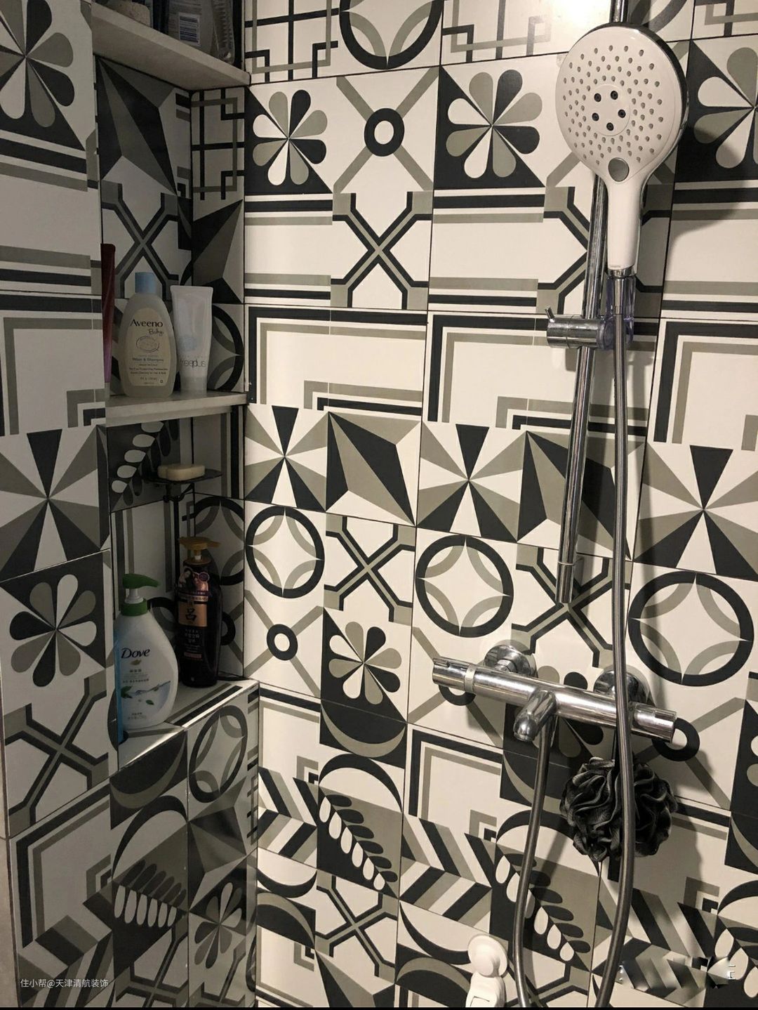 为身兼淋浴区铺贴的瓷砖,效果太抢眼了,不过装饰性真的很强啊。墙上设计了壁龛,可以适当增加一些储物空间,觉得还不错呢。分享于互联网,不代表公司任何立场,不承担任何责任如侵删。