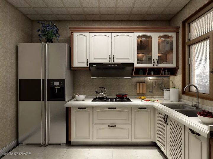 像下面这个厨房,灶台同样是靠近墙边,但是预留出了20cm的位置,这样的设计才是正确的。