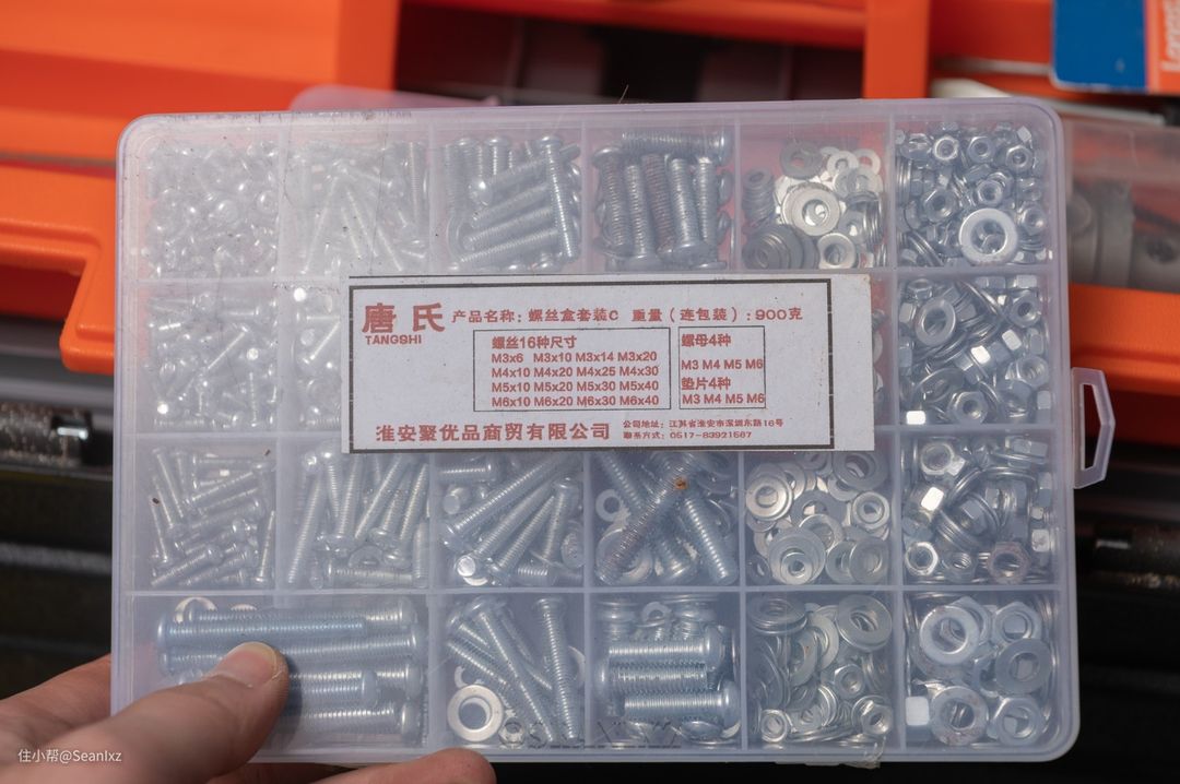 900g螺丝螺母垫片套装,常规的基本都有,做备用了。
