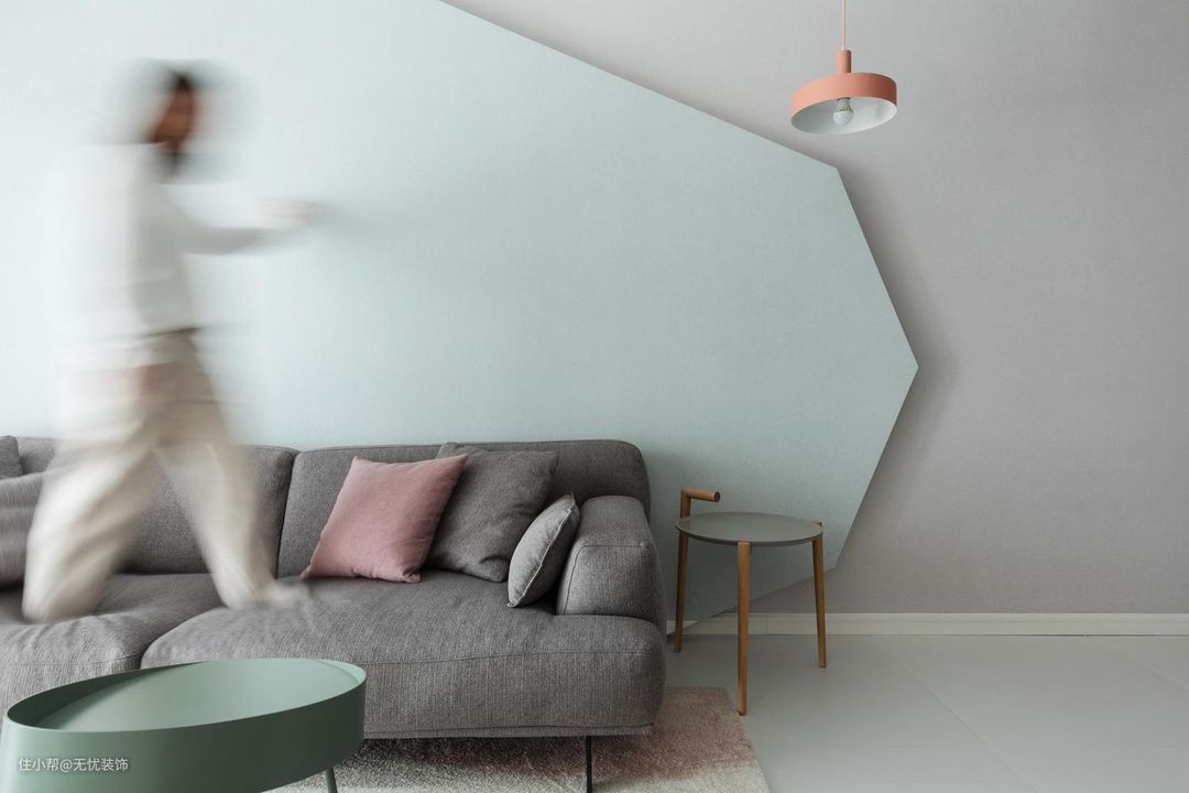 #客厅 #空间设计的独特之处在于对墙面的拼色处理,这一次我们将色彩做成了立体的样子。
