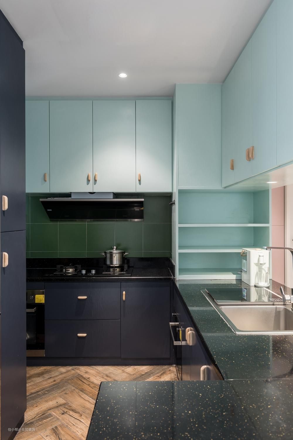 #厨房 #搭配以山青色厨房吊柜,让厨房显得更有活力。