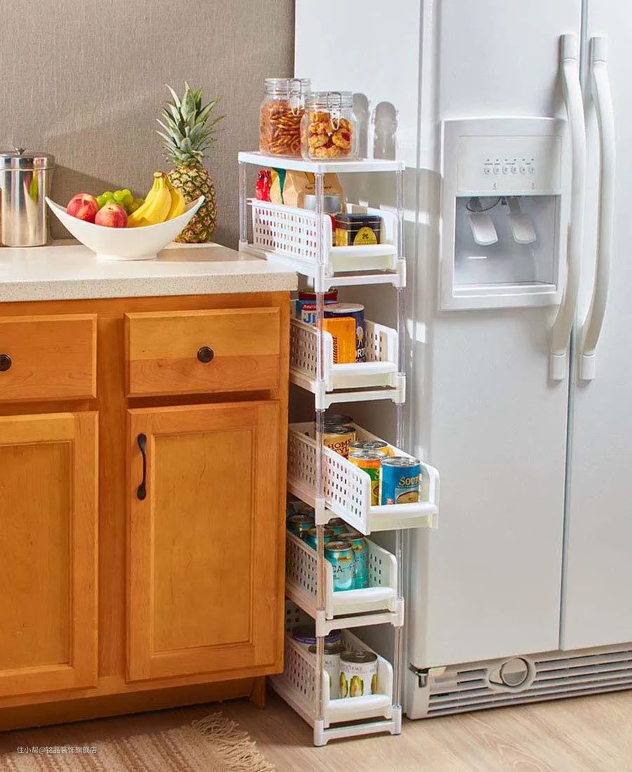 对此,不妨运用夹缝收纳柜,