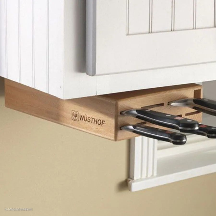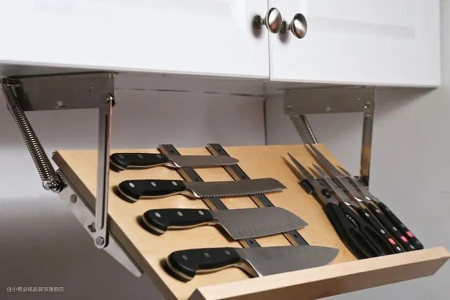 二是将刀具收纳架直接钉在吊柜下方,