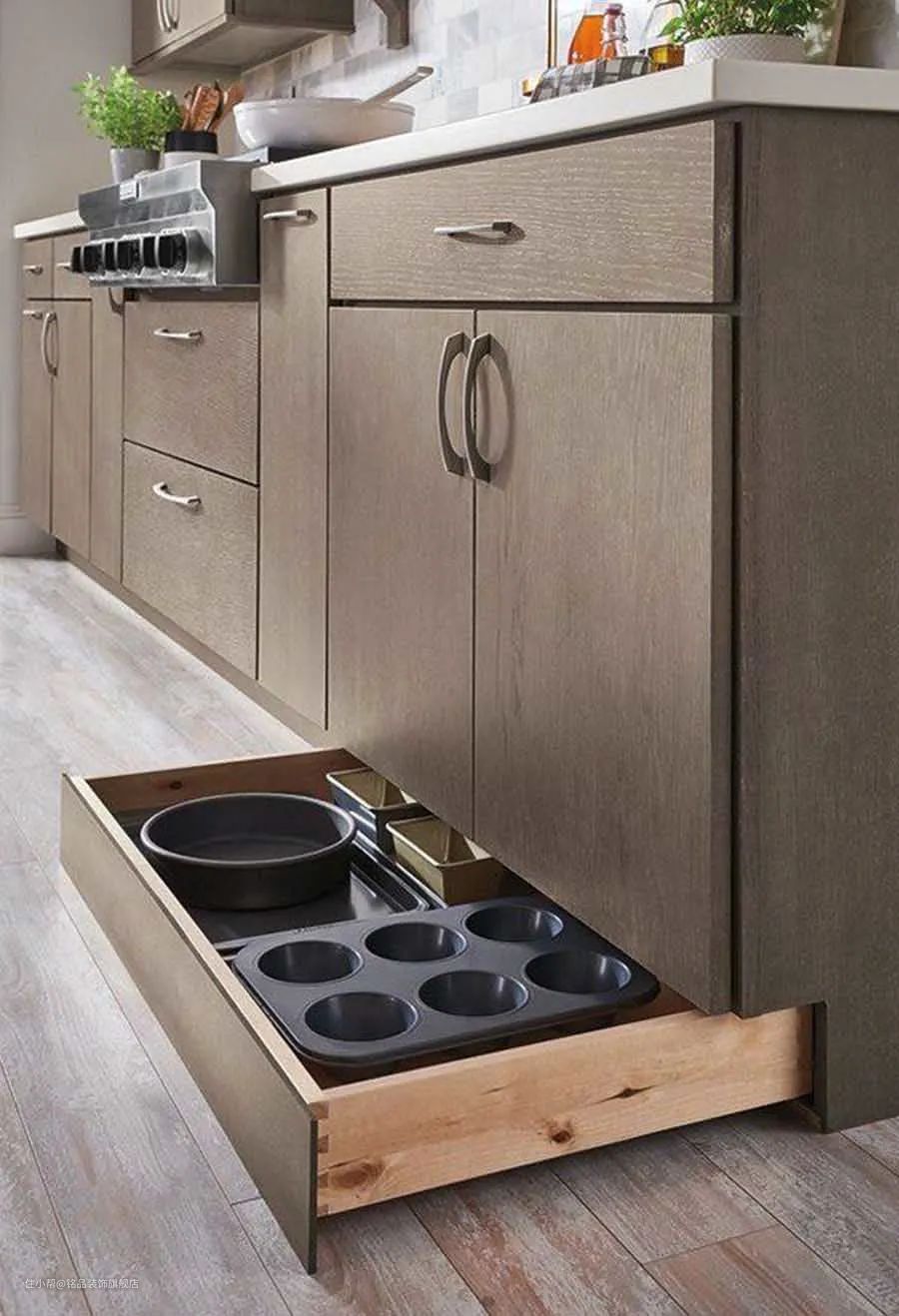 没想到吧!橱柜底部也能规划收纳空间,