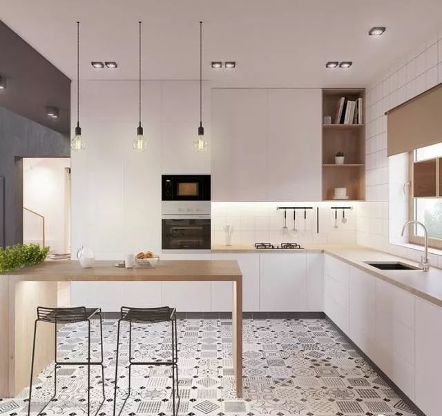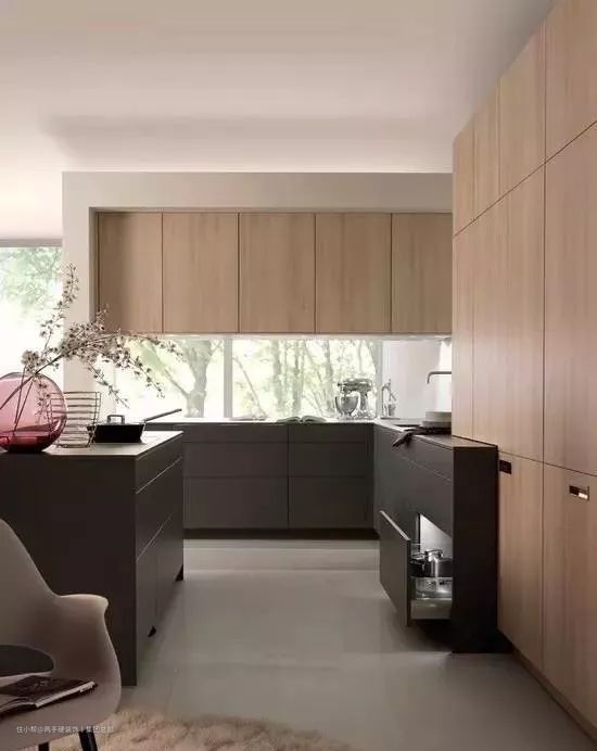 白色+原木色是橱柜设计中常见的色彩搭配,它除了能与经典色系搭配外,与大自然相近的颜色搭配,更显自然质朴,干净清澈。