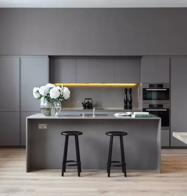 高级灰成为高雅生活的时尚风范,没有特定的风格,却能驾驭任何一种风格。高级灰厨房打造的视觉效果,并非单一而枯燥,利用材质的搭配、灯光的效果、配色的点缀,一样将高级灰厨房打造地万种风情。