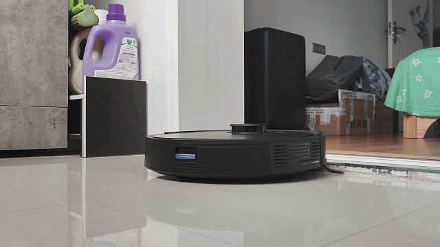 之前我用过一款低价扫地机器人,到阳台后就爬不回来了。这次我依然指定科沃斯地宝T9 AIVI扫地机器人到阳台进行区域作业,通过GIF动图可以看出,清扫结束后T9AIVI扫地机器人可以轻松越过1.9㎝+0.4厘米(过门瓷砖高1.9㎝,滑轨高0.4㎝)的台阶,越障能力还是非常出色的,这是我家最高的位置了,只要这里能过,其他地方都没压力哈。