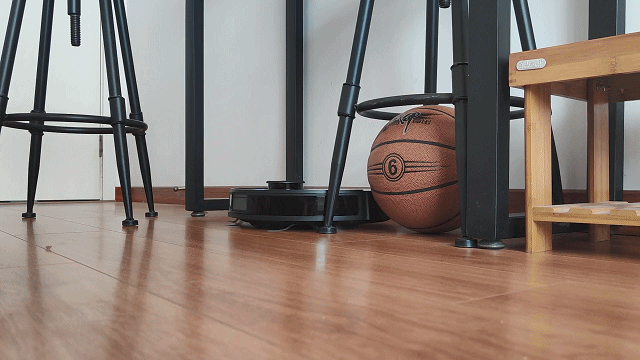 接着我又测试了避障脱困能力,虽然说用扫地机器人得注意物品摆放,来看效果,这一次我特意把它放在了环境比较复杂的吧桌下面,预留的出口仅供机器人穿过,可以看到当地宝T9AIVI扫地机器人经过桌椅腿的时候可以轻松避开,完全没有任何磕碰,这家伙轻车熟路呀。