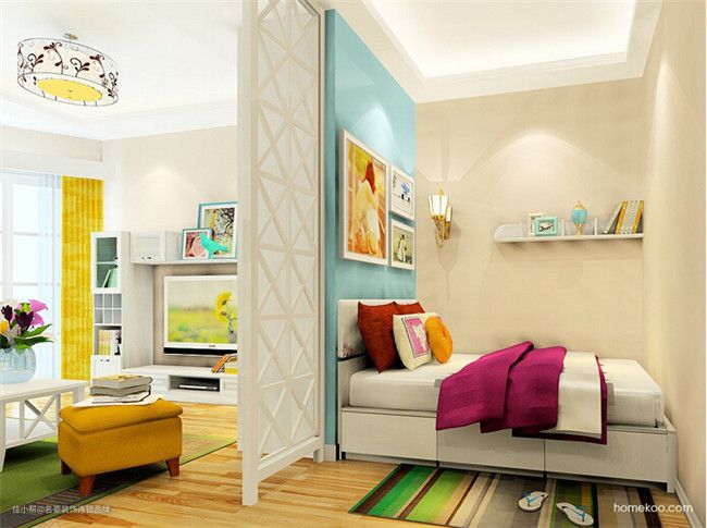 对于小户型来说,在屋内采用隔断设计,会是一个不错的选择,它可以让房间的格局变的井井有条。隔断的形式和材质有很多种,可以用玻璃进行隔断,也可以用家具进行隔断,还可以用布艺进行隔断,等等。