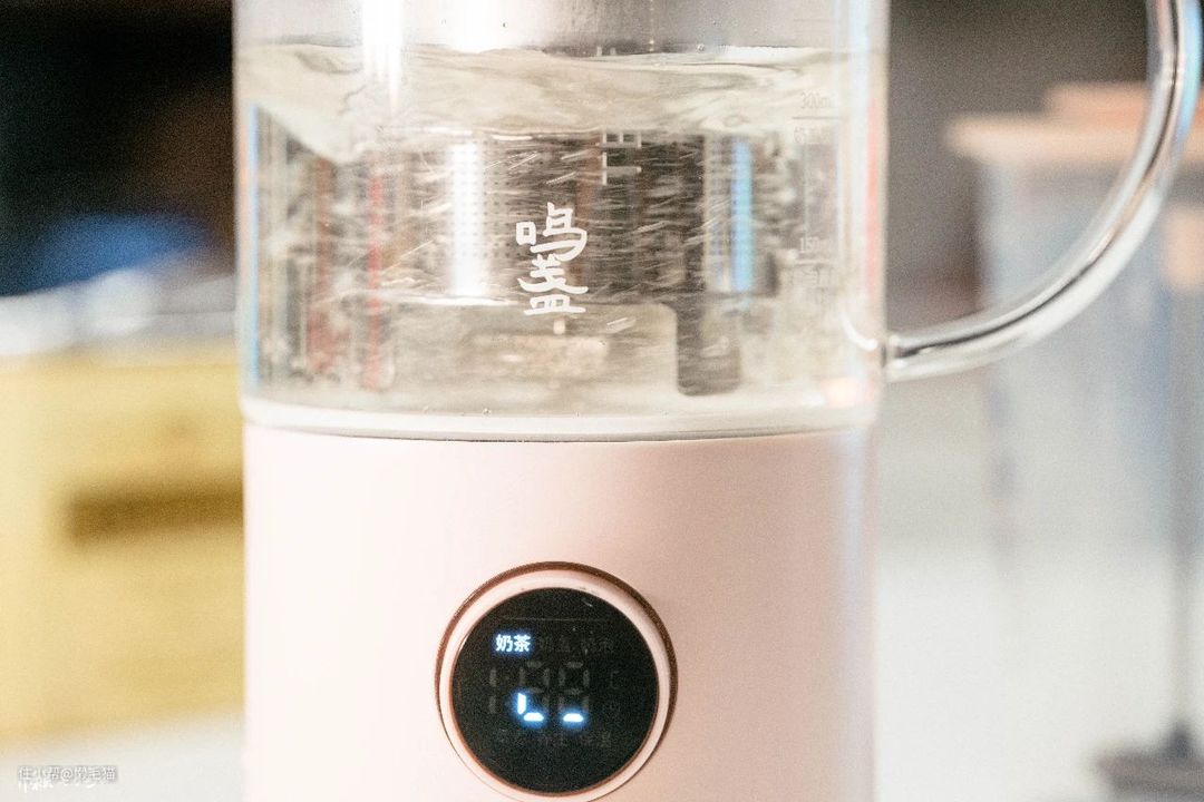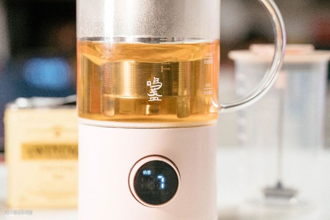 鸣盏奶茶机本身非常小巧,放在家里或者办公桌上都不占地方,功能还非常丰富,早晨烧水、泡茶或者搅打奶泡,下午煮奶茶、做奶盖,一杯多用,方便快捷。