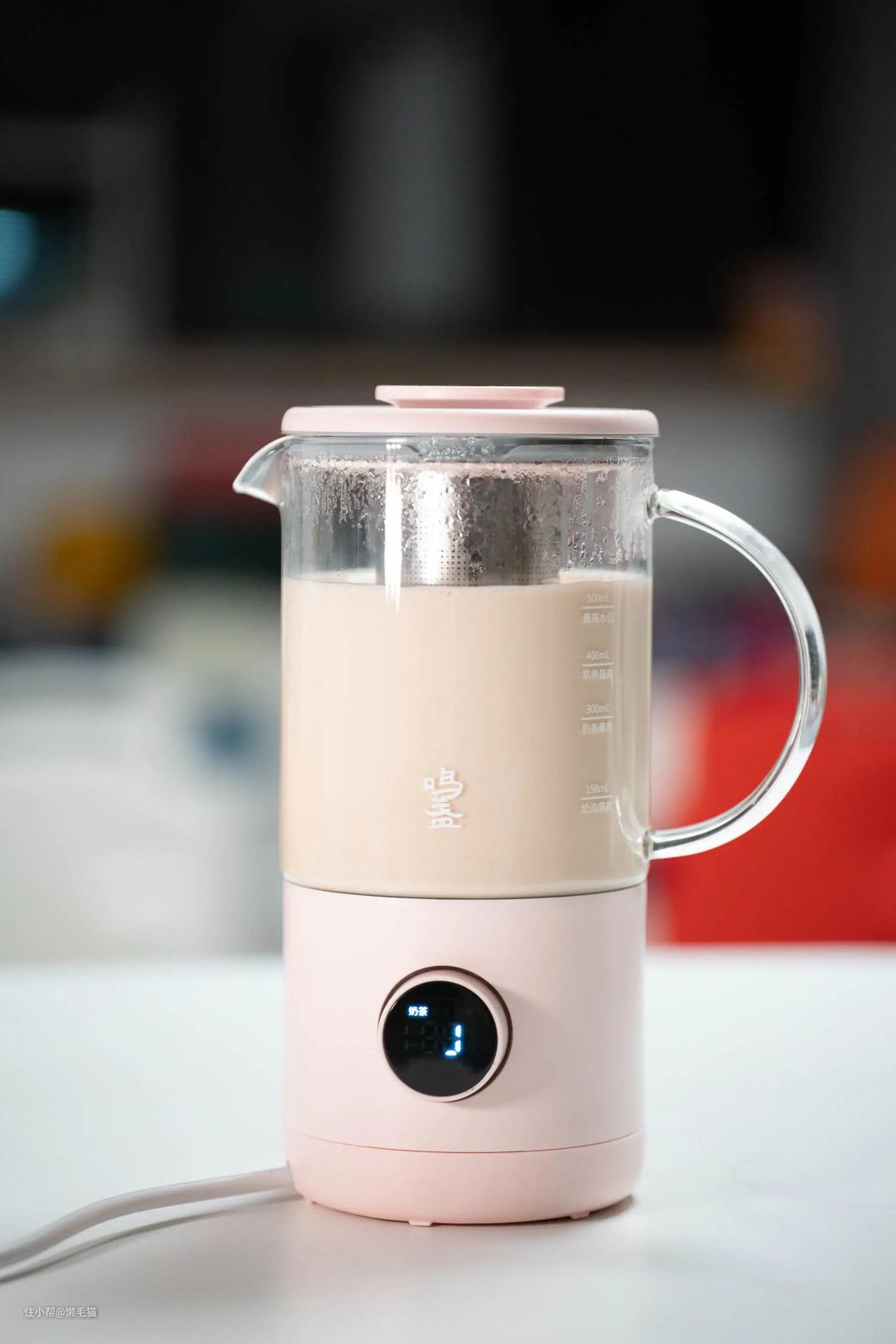 鸣盏奶茶机一共有三个颜色,白色、粉色和灰色,都很高端的亚子,我选的是是粉色,非常可爱,放在办公室里很吸睛(同事路过都会问这是啥玩意儿)。