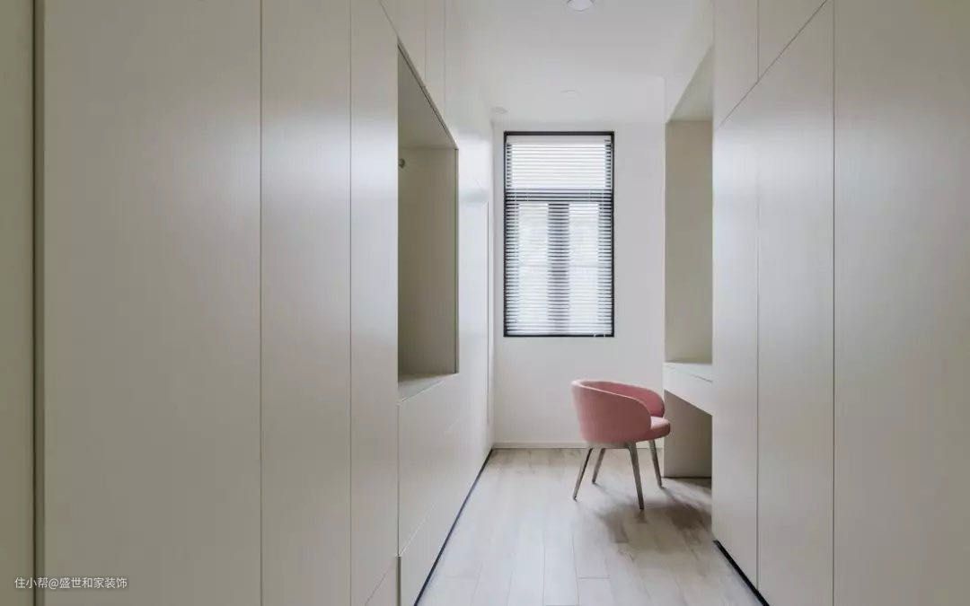 长廊不知道怎么设计?那就打上柜子当衣帽间吧,反正空着也是空着。