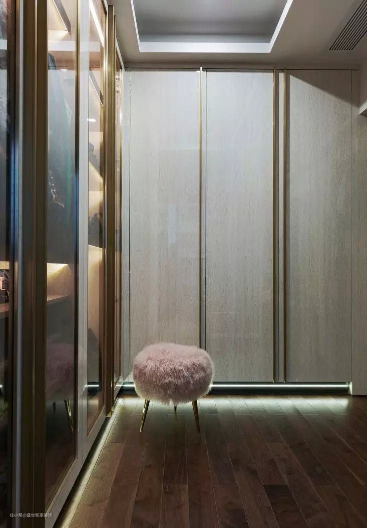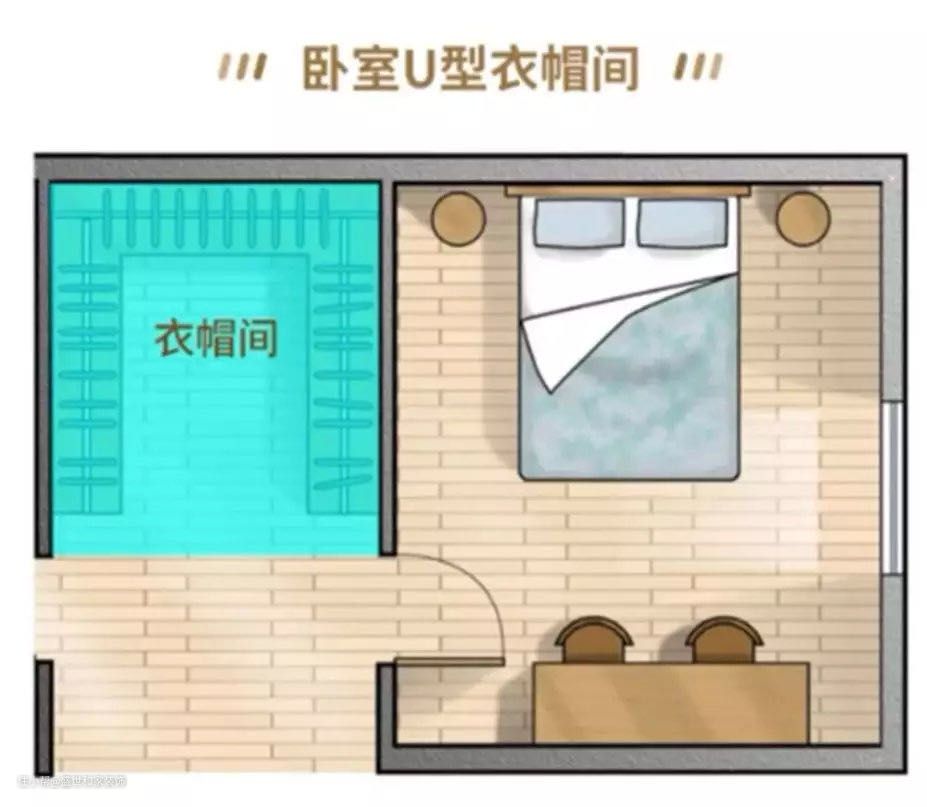 对于很多大户型来说,房子本身就已规划出衣帽间的位置了,我们只要装修一下就行。面积大,就选双排型或U型,收纳空间更大。