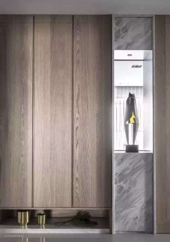 玄关的作用有很多,不仅要用来过渡空间,更要承担家里的收纳任务,没有独立空间的话,不妨把衣帽间放在这里。