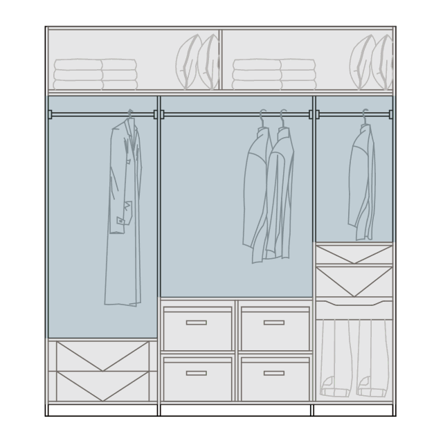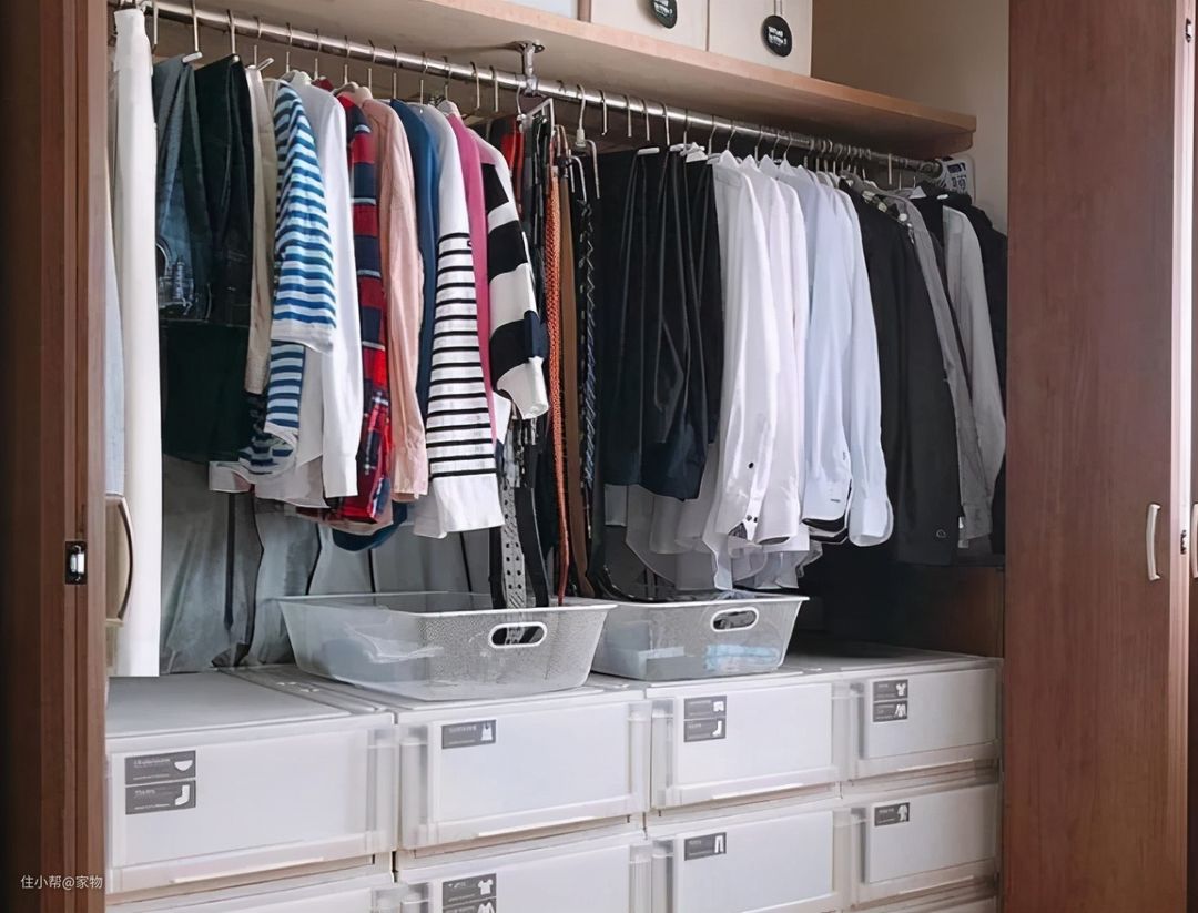还不如规划好橱柜内空间,该挂放挂放,该叠平叠平,实在不行就借助收纳盒,柜内美观大方,用起来最省心。