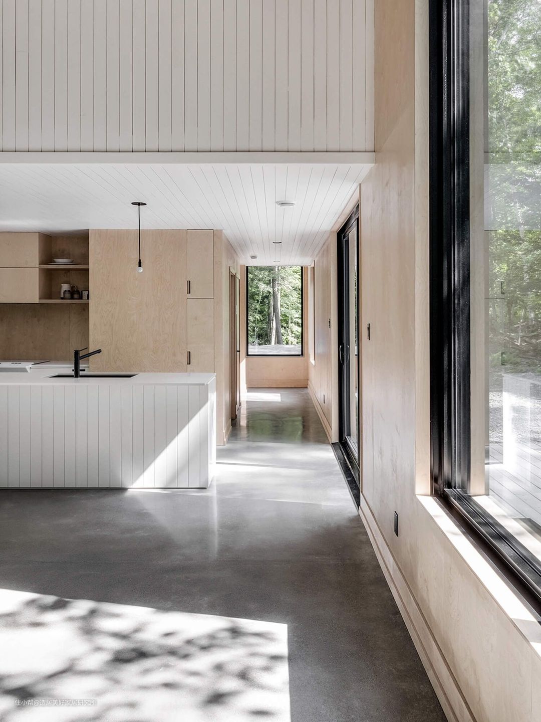 木饰面板有整面拼接和线条拼接两种做法,其面饰纹理很好的保存了木材原始肌理感,能营造温润和谐的场域氛围。需要额外注意的是,木饰面适宜窄窗台、而木饰线条适合凸窗。