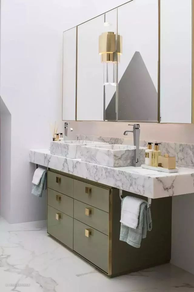 一体盆的造型跟台下盆长得有点儿像,只不过盆面和下面的柜子是连在一起的,不可分割。所以跟台下盆还是有很大区别的。这种大多也是成品出售,买回家就能直接装。现在市面上大多是跟镜柜一起搭配来卖的(对,就是大家常说的浴室柜)。