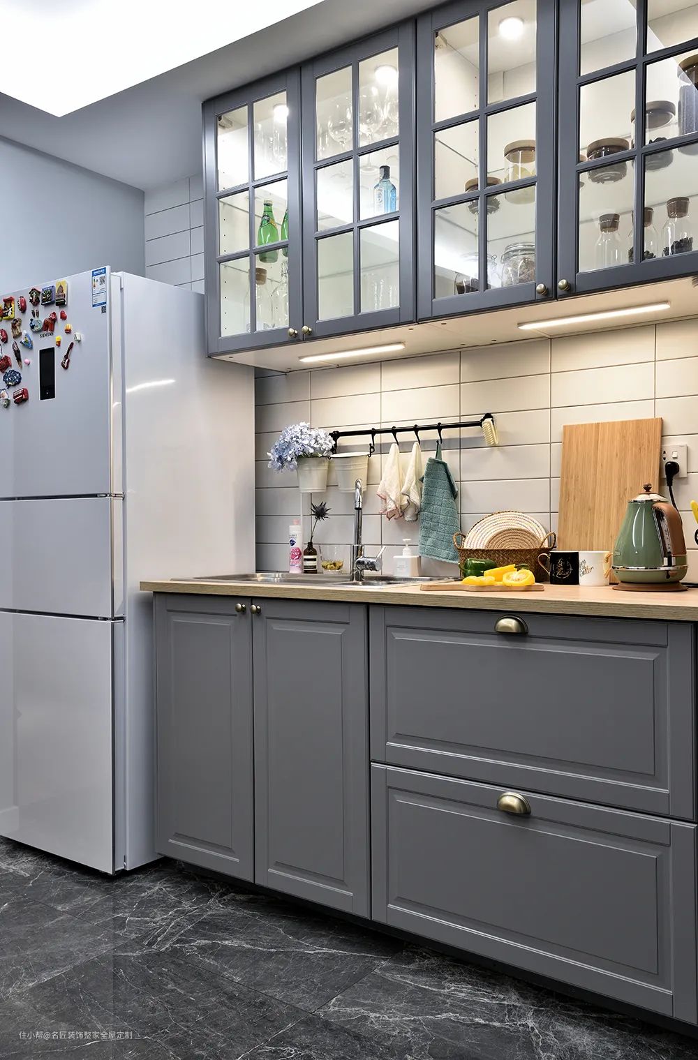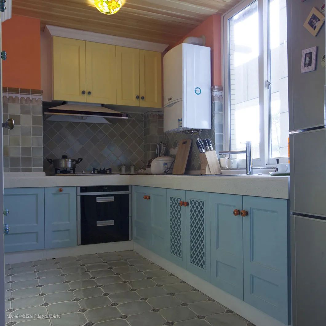 橱柜除了单色门板设计之外,现在也非常流行拼色设计。