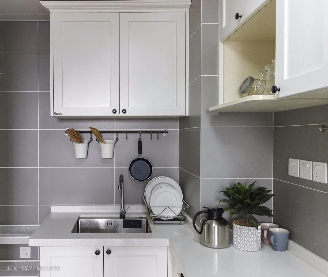 而且白色无论与何种颜色的瓷砖、厨具搭配效果都十分和谐,能保持清新素雅而不失活力的本色。