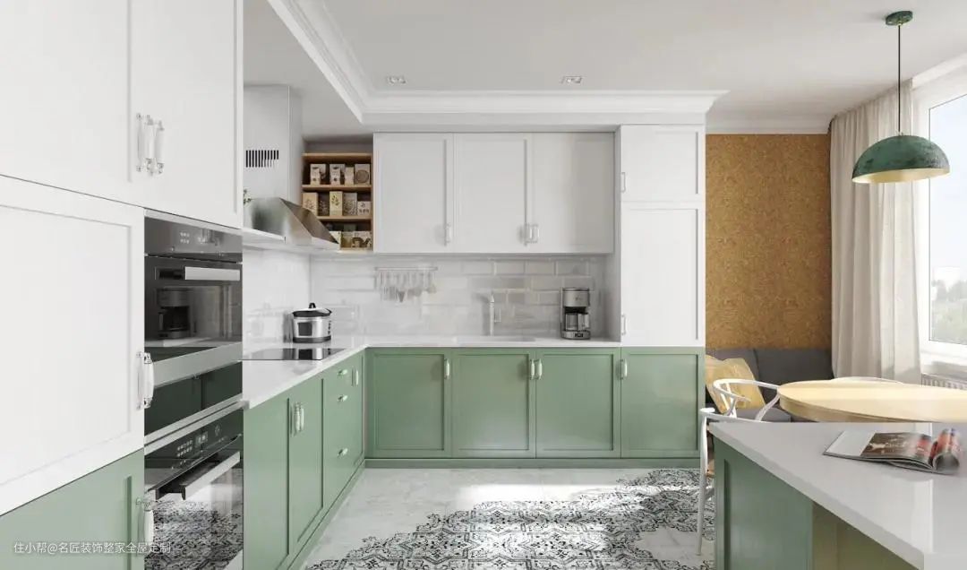 橱柜除了单色门板设计之外,现在也非常流行拼色设计。