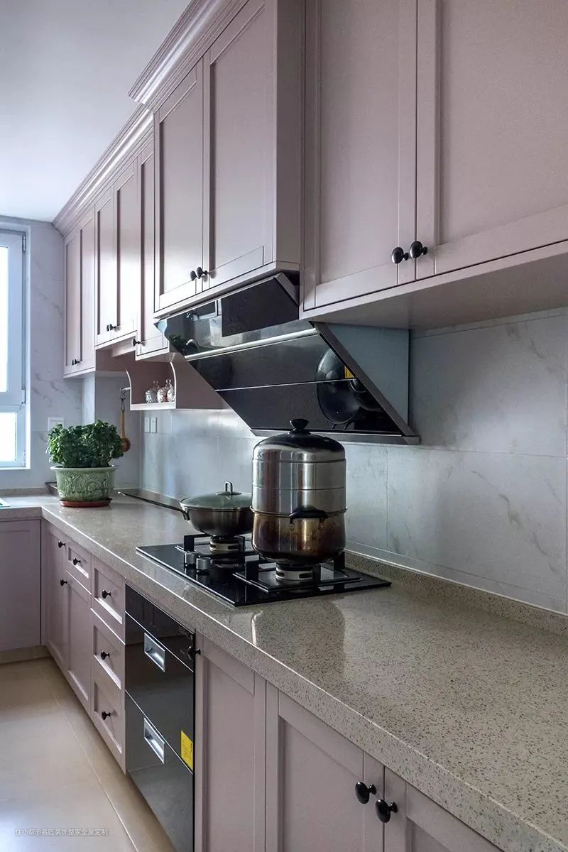▲粉色的特点十分明显,颜值非常高,也难驾驭。选择这个配色,橱柜造型切记复杂,简单才能显出高级感。