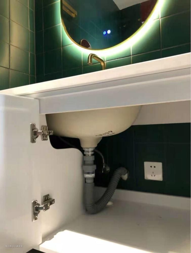 但国内大部分排水管还都是地排,使用壁挂式浴室柜的时候,需要把下面的排水管改成墙排。否则悬空的柜子下面露着一根管,怎么看都是丑陋无比。