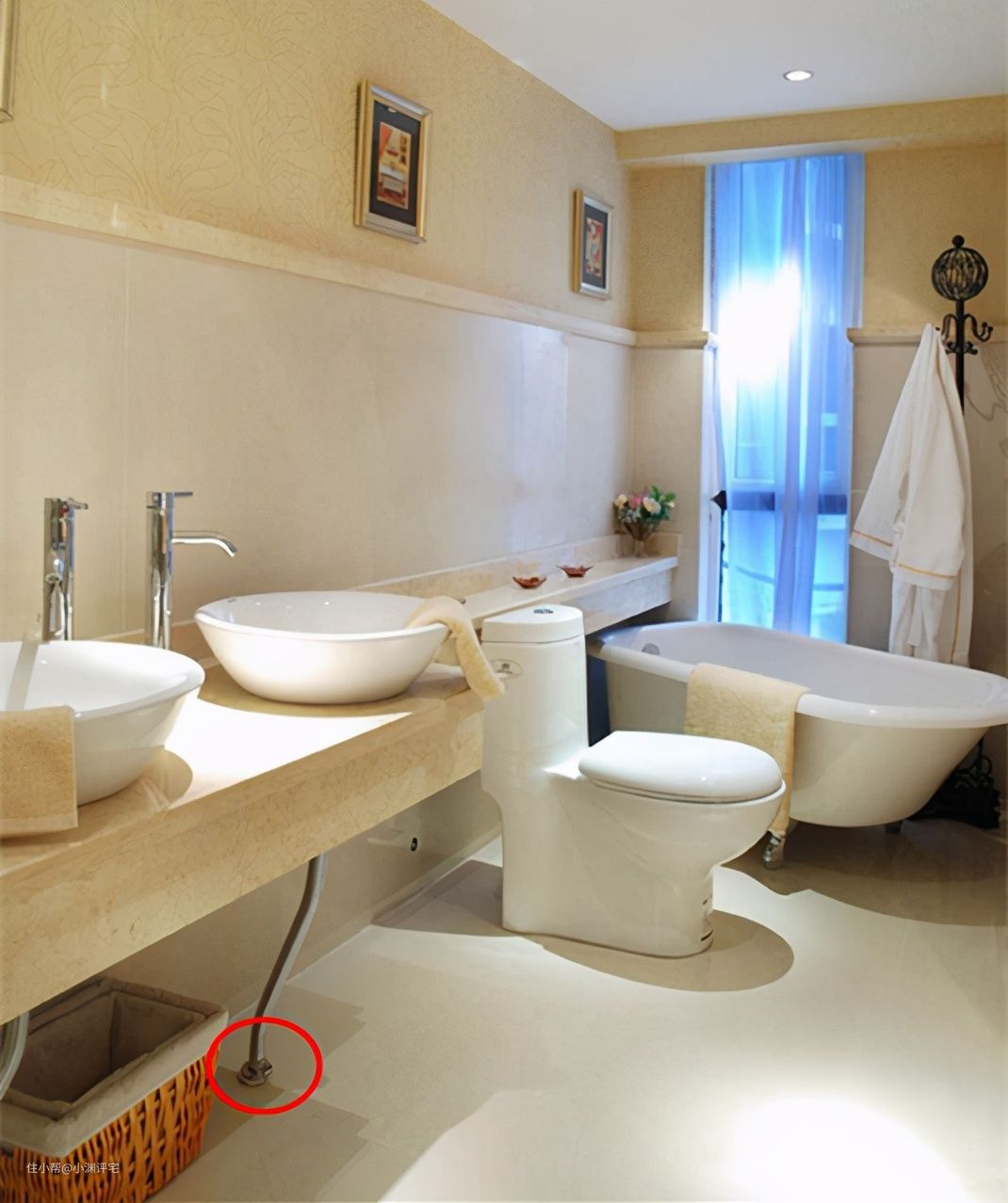 偶尔想在浴室柜的下面放点东西,也因为管道的遮挡,让这一计划泡汤了。