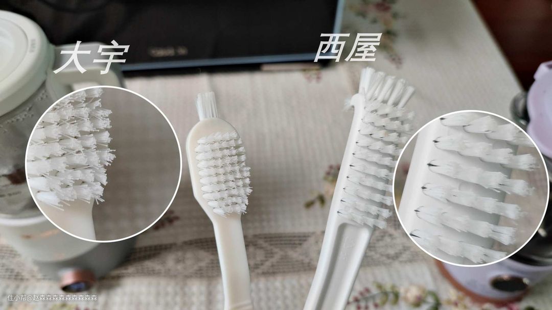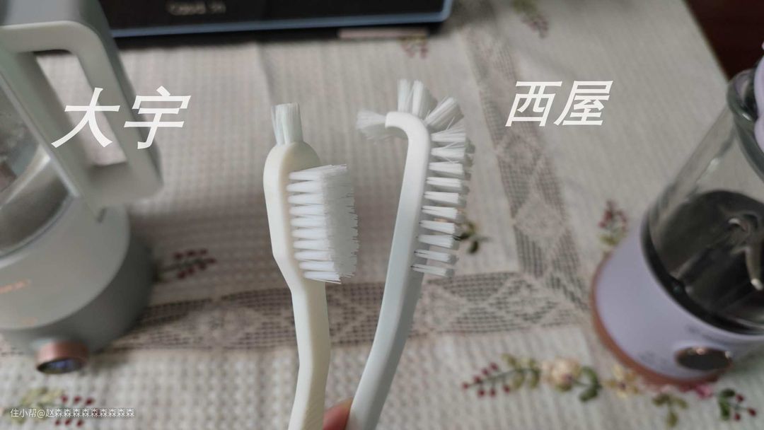机器附赠的2个清洁刷,同样来说,大宇会比较细腻,有一些小角落,需要头上那几根毛,西屋就很粗狂,整个走豪放路线,我个人来说,2个刷子用的比较多的还是大宇的。因为一些细小的死角落使用起来的频率会更多一些。
