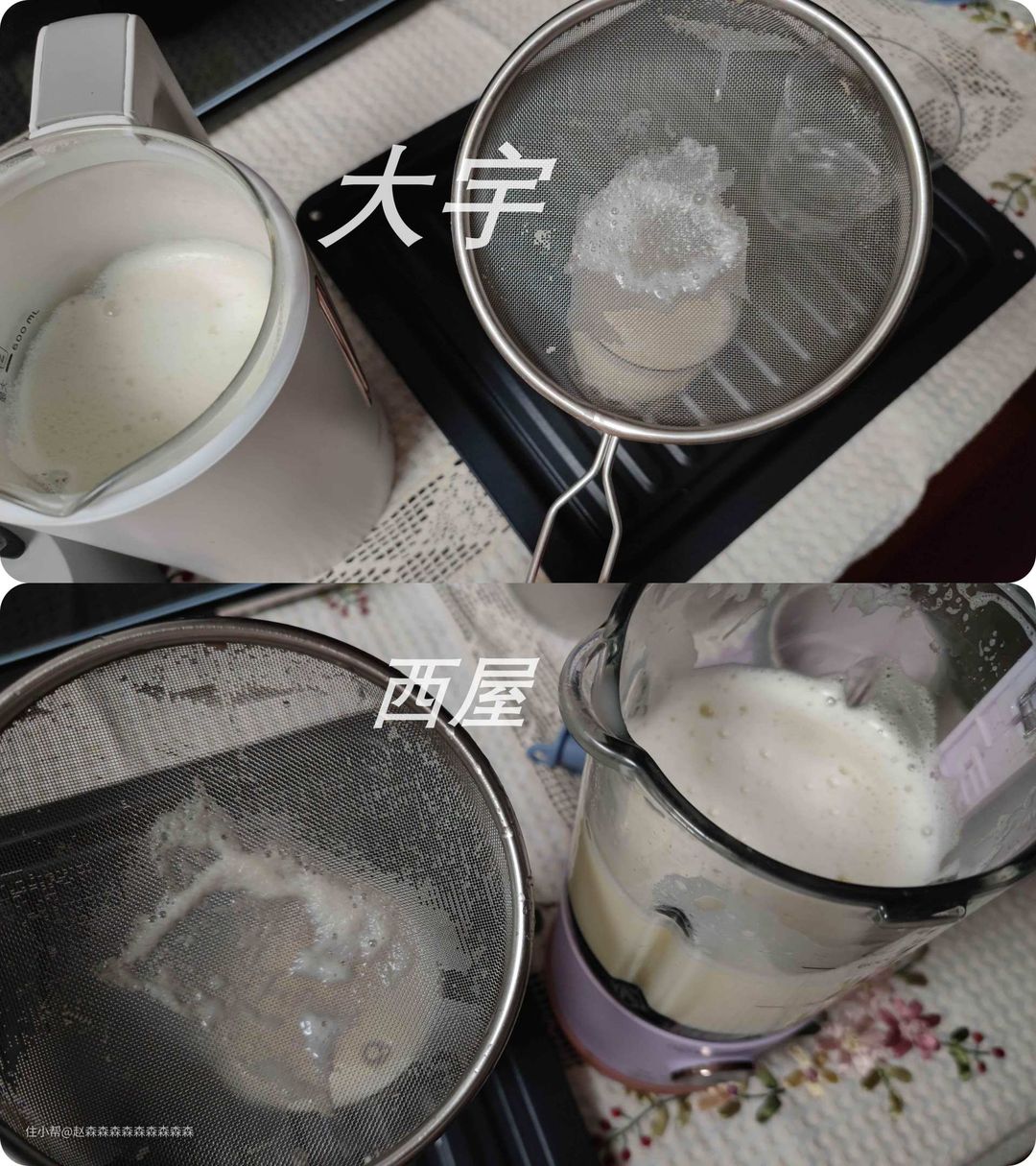 还要说的是,同样的豆浆模式,大宇要比西屋时间短,来看一下打出的豆浆细腻度,从图片来看,差不多,可能大宇略微细腻些。