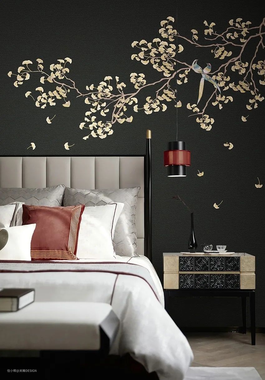 墙布的图案也不能乱用,讲究很多。条纹越宽,空间也越显小,像这样宽的竖条纹墙布,轻易不要贴。
