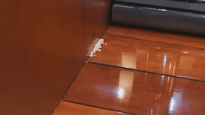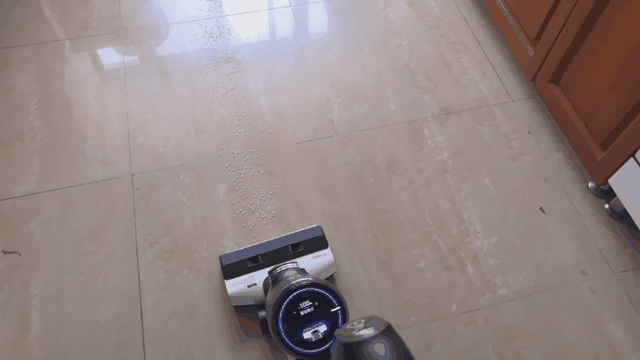 ▲首先是以咖啡为代表的液体污渍,这点是吸尘器完全无法应付的问题,而添可芙万2.0洗地机则可以轻松搞定,一遍拖吸过去就一点印记都没有了。