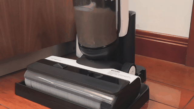 ▲制备除菌液后,添可芙万2.0便会通过滚刷与底座摩擦的形式清洗滚刷,这段过程中,制备好的消毒液会流入滚刷上端,而清洗后的污水则会被吸入污水箱,整个过程均为全自动,用户只需要在自清洗完成后将污水桶中的污水与固态杂质倒出并清洗污水桶。
