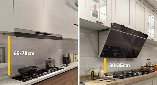 侧吸烟机为30-35cm,以保证抽油烟的效果。
