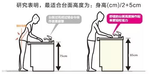 洗菜、切菜、炒菜都围绕着操作台转,台面太矮,会让做饭时候全程弯着腰驼着背,怎能不酸;台面太高,就会全程直着身子、抬着手,怎能不麻。