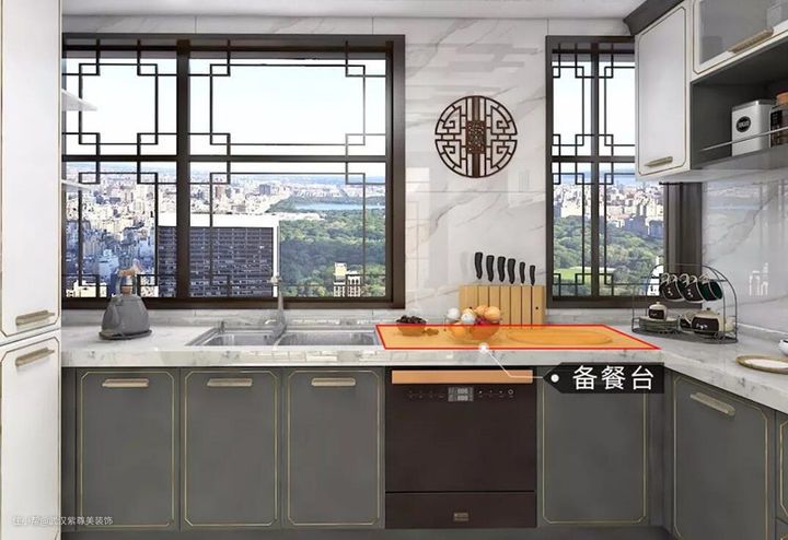备餐区是指水槽和灶台之间的留白位置,看似不起眼,却是厨房操作台上的绝对“主角”:切菜、备菜、砧板、刀具...一个不小心就被塞得过度饱和。