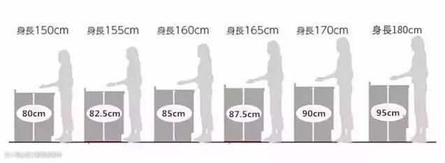 中国普遍家庭,操作台高度一般是80-90cm,对应的是身高1.6米的女主人手臂自然抬起的高度,不会因为台面过高而操作不便。