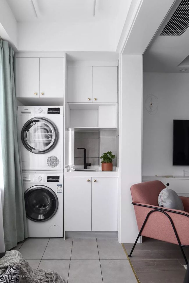 刚需户型业主都比较关注洗衣机到底放在哪里会更好?有的人会把洗衣机放在卫生间里,那样洗完澡就可以直接洗衣服,很方便。但是如果卫生间的空间有限,那么洗衣机也可以放在厨房又或者是阳台上,洗好的衣服可以直接晾晒,减少来回走动,相对而言更加方便。